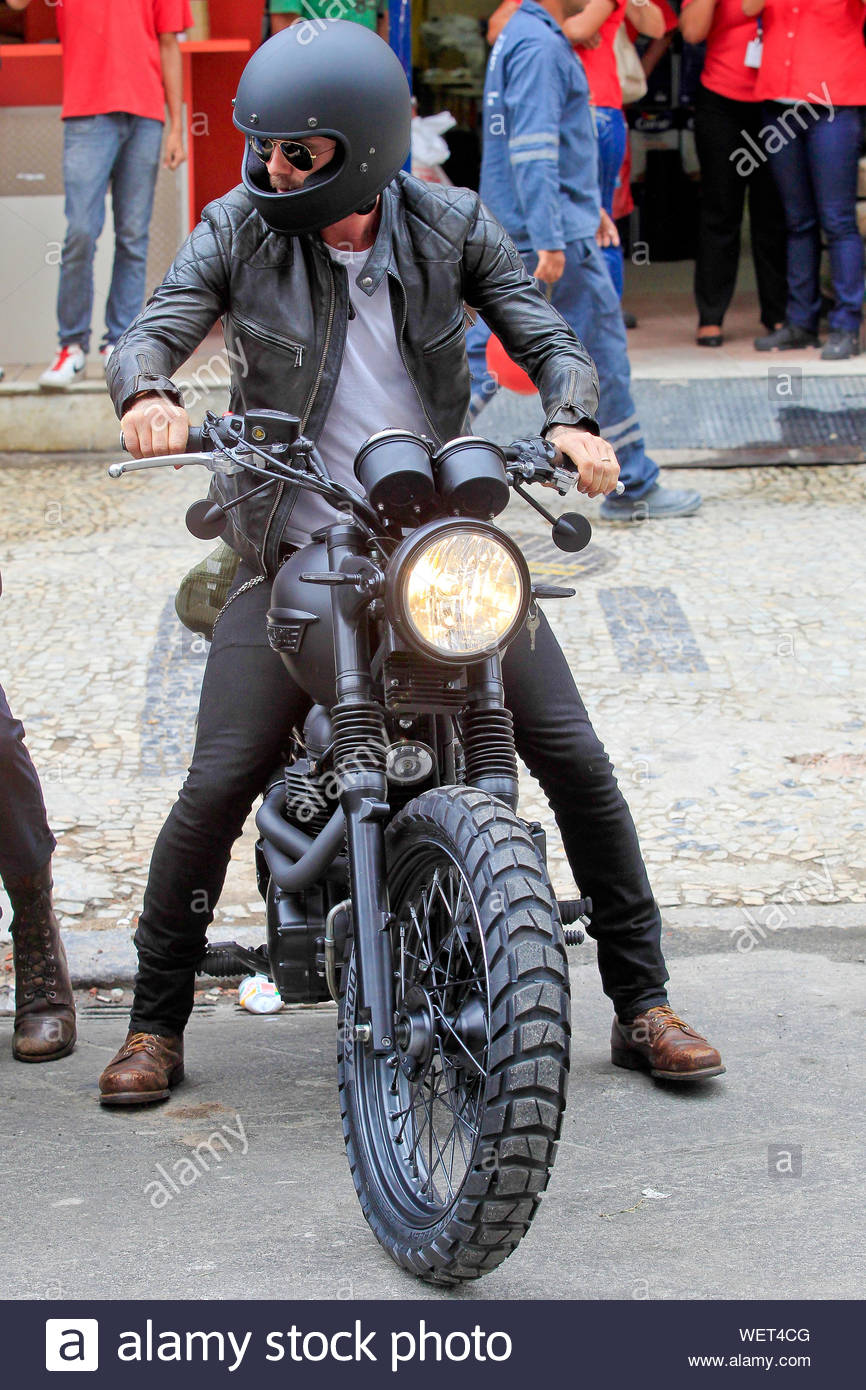 Rio De Janeiro Brazil David Beckham Goes For A Bike Ride On A Triumph Motorcycle In Rio This Afternoon The Former Soccer Player Geared Up For The Ride Wearing A White