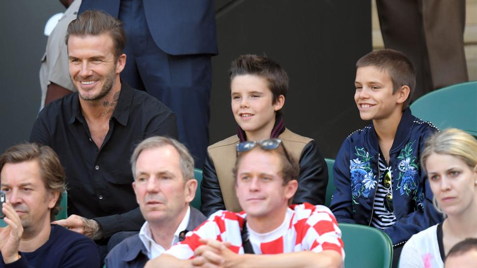 Beckham Gets Flirty With A Blonde At The Football Though It S Brooklyn Who S Giving The Hugs Out Not David Beckham Mirror Online