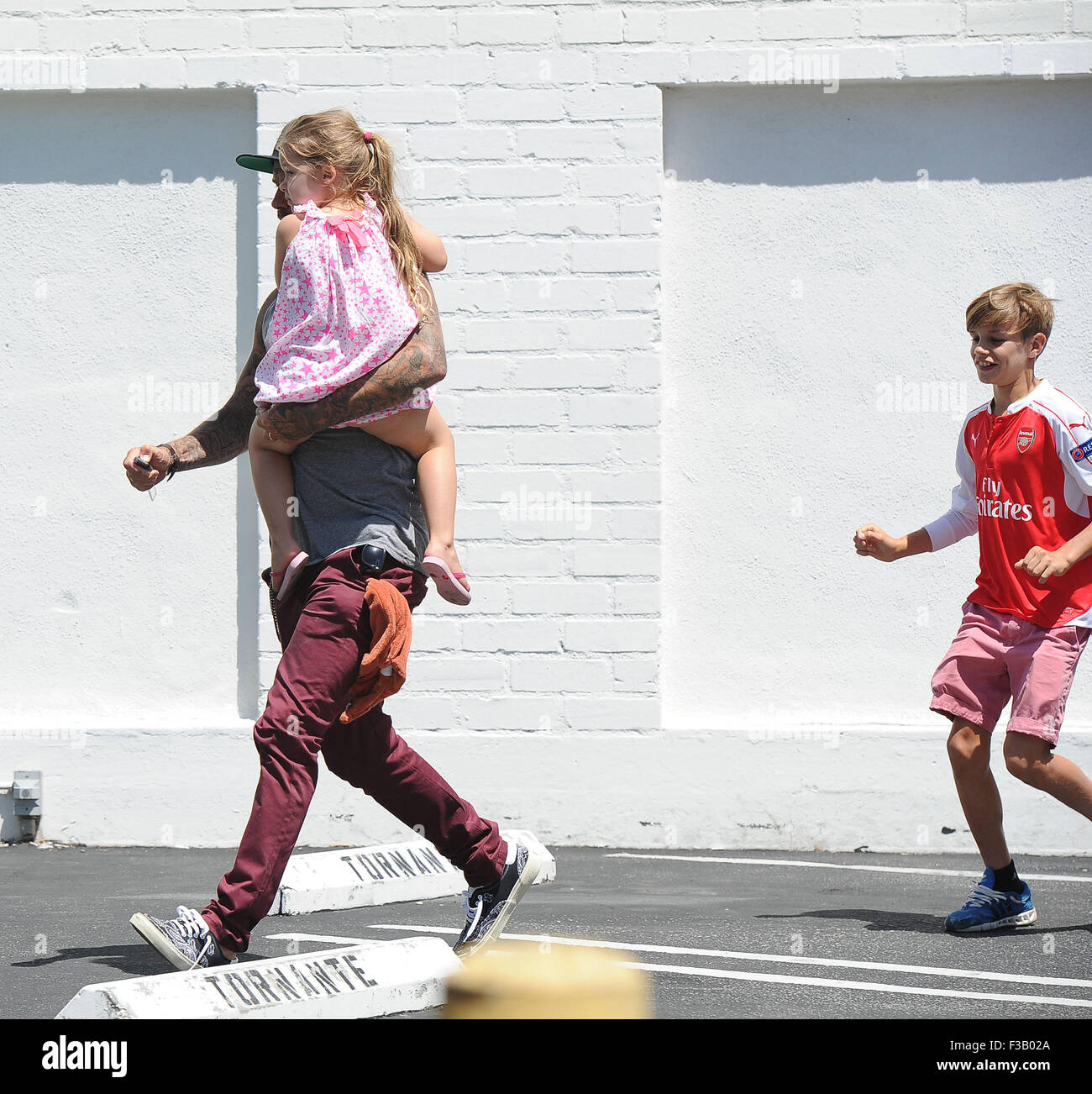 David Beckham Takes His Kids And Their Nanny To Color Me Mine For An Stock Photo Alamy