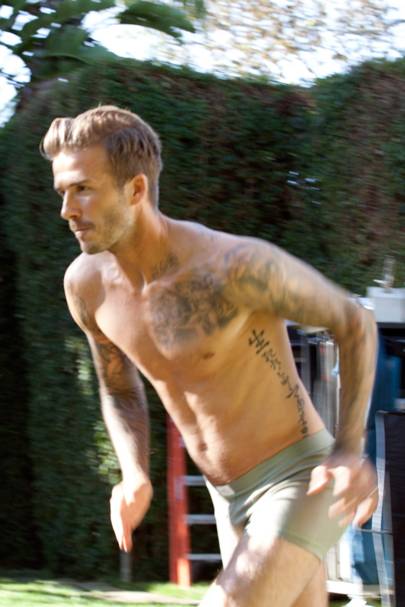 Soccer star david beckham runs through the streets of beverly hills in just his underwear in a new ad for fashion label hm directed by filmmaker guy ritchie. May david beckham s collaboration with hm and its promotional toplessunderwear photos never end. The collection was launched globally februar.