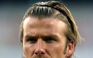 David Beckham S Short Mohawk Faux Hawk Messy Hairstyle David Beckham Long Oiled Hair With A Band