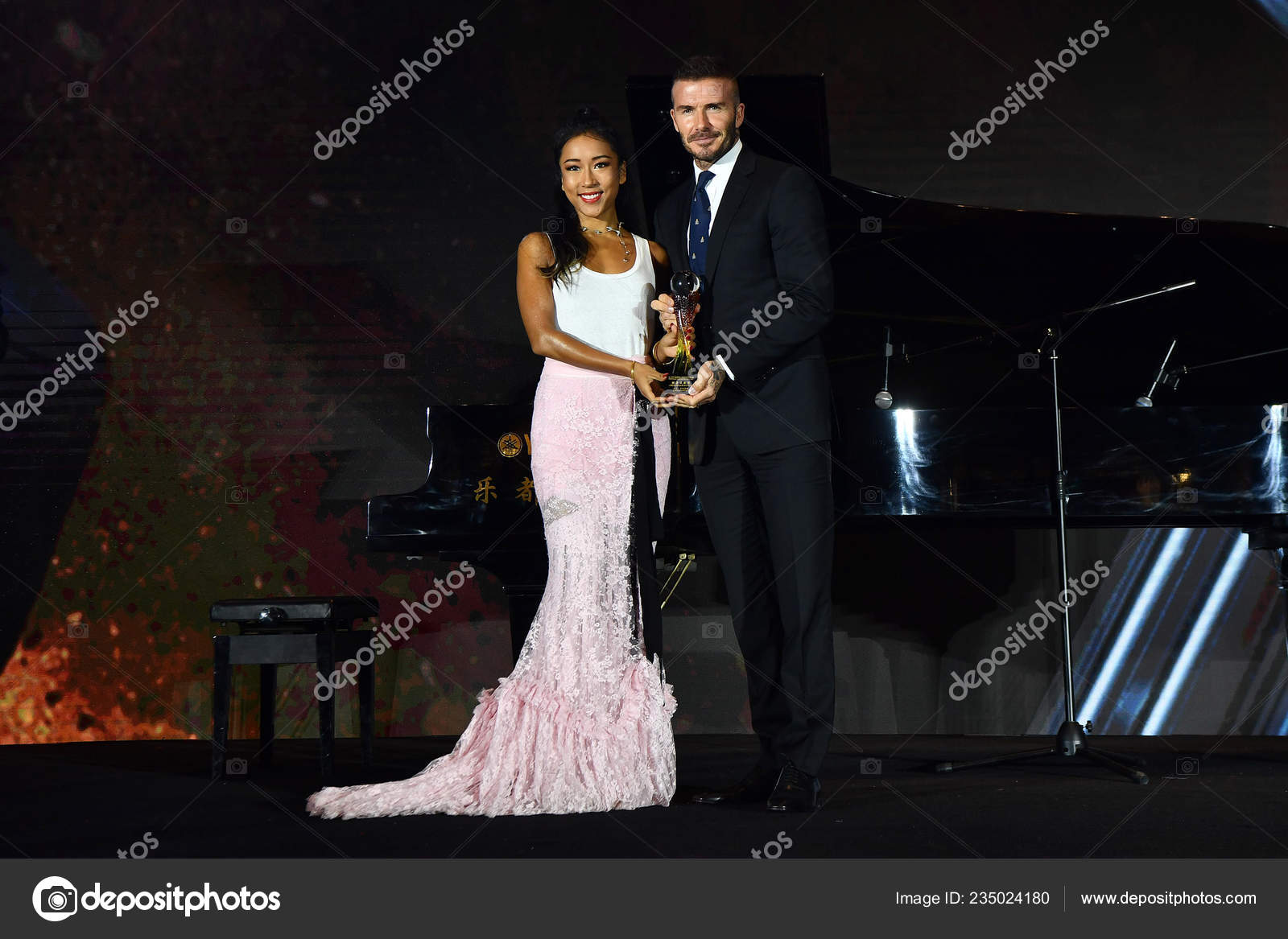 Anglicka Fotbalova Hvezda David Beckham Vpravo Navstevuje Uvitaci Raut Behem Stock Redakcni Foto C Chinaimages 235024180