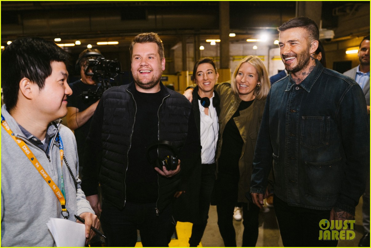 James Corden Pranks David Beckham With Hideous Statue Of Himself Watch Here Photo 4255649 David Beckham James Corden Pictures Just Jared