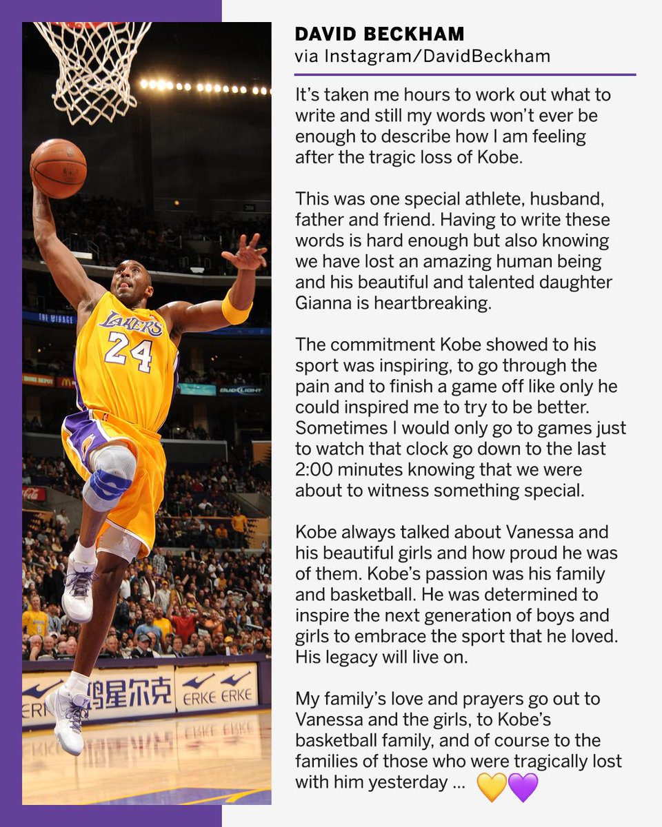 David Beckham Pays Tribute To Kobe Bryant Explains He Won T Ever Have The Words To Explain The Loss David Beckham Kobe Bryant Just Jared