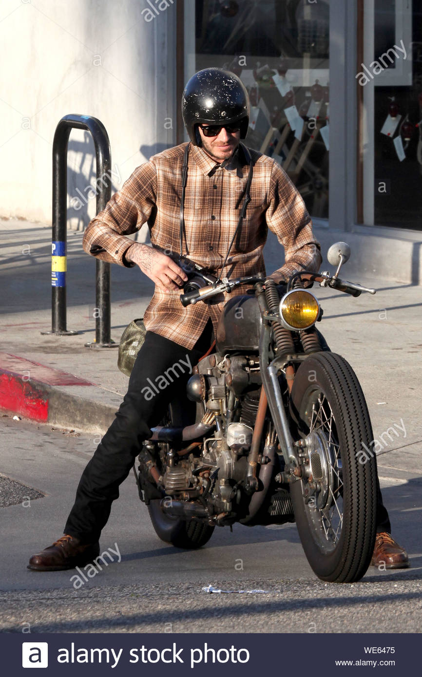 David Beckham Tearing Through The Streets Of La On His Vintage Motorcycle A 93 Knuckle Via Dailymail Co Uk Motos Clasicas Motos Hijos De David Beckham