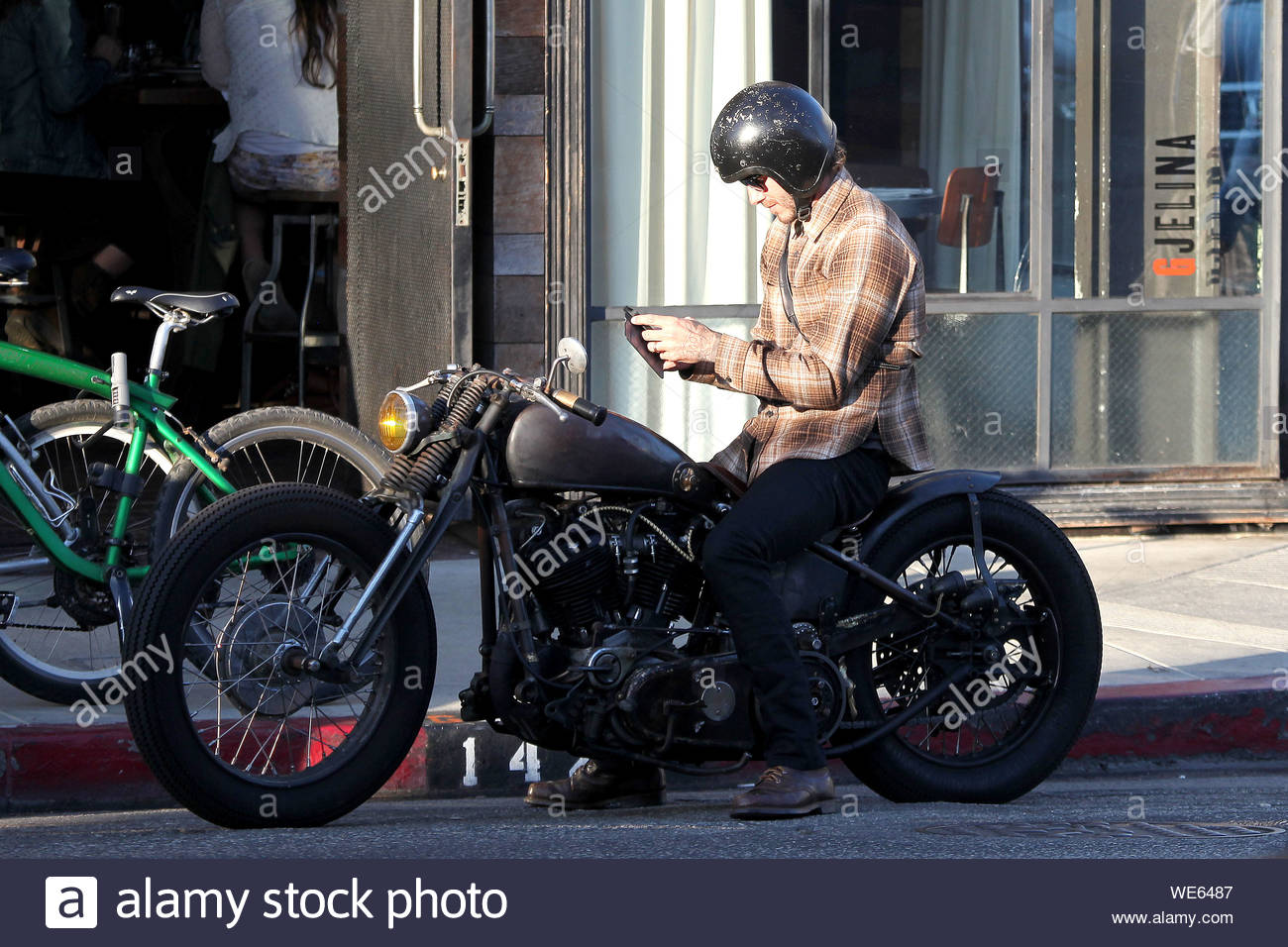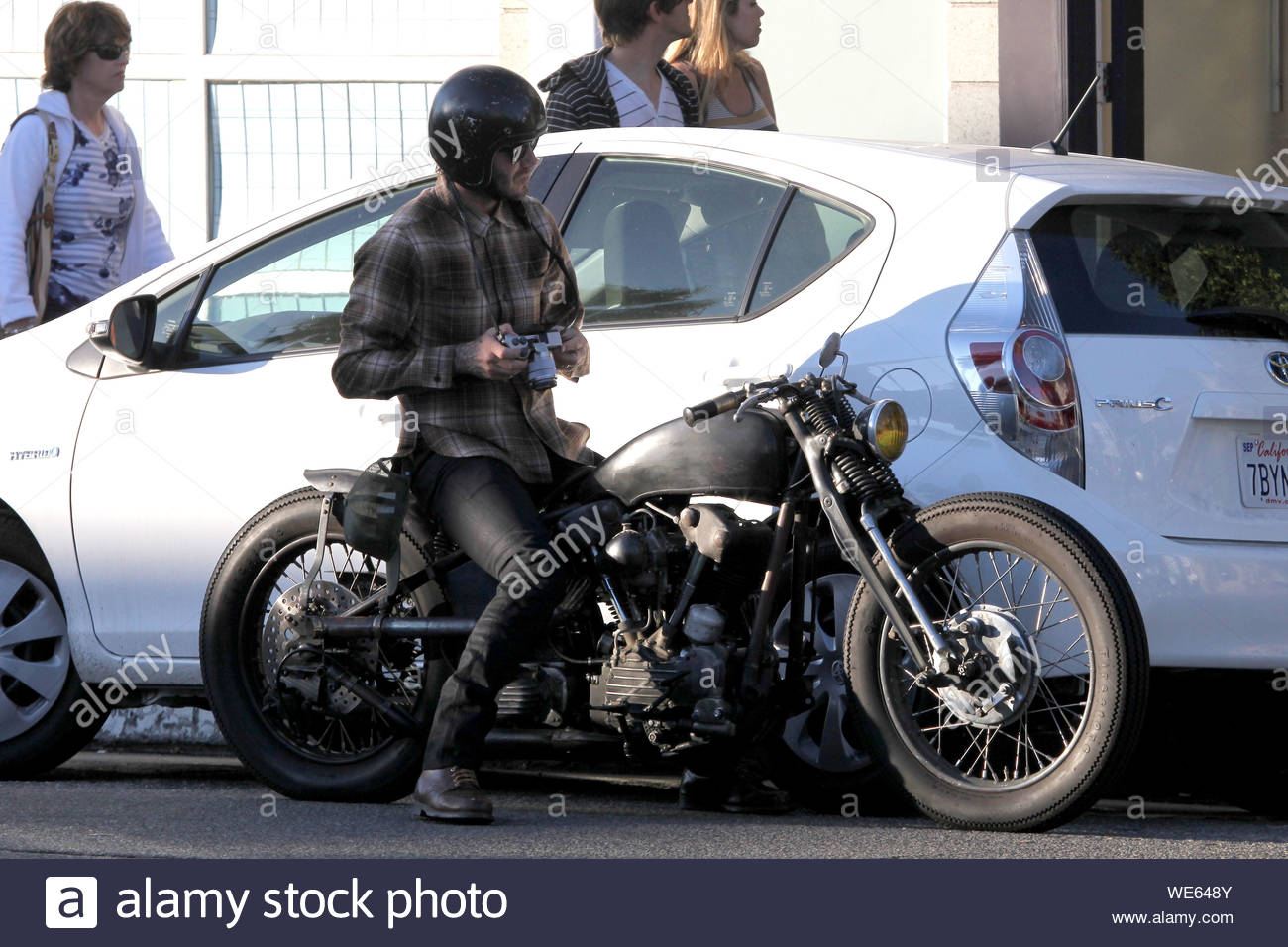 Venice Ca David Beckham Disguises Himself Well In The Crowd As He Cruises Up And Down Abbot Kinney In Venice Beach Taking Pictures With His Camera And Riding His Vintage Motorcycle