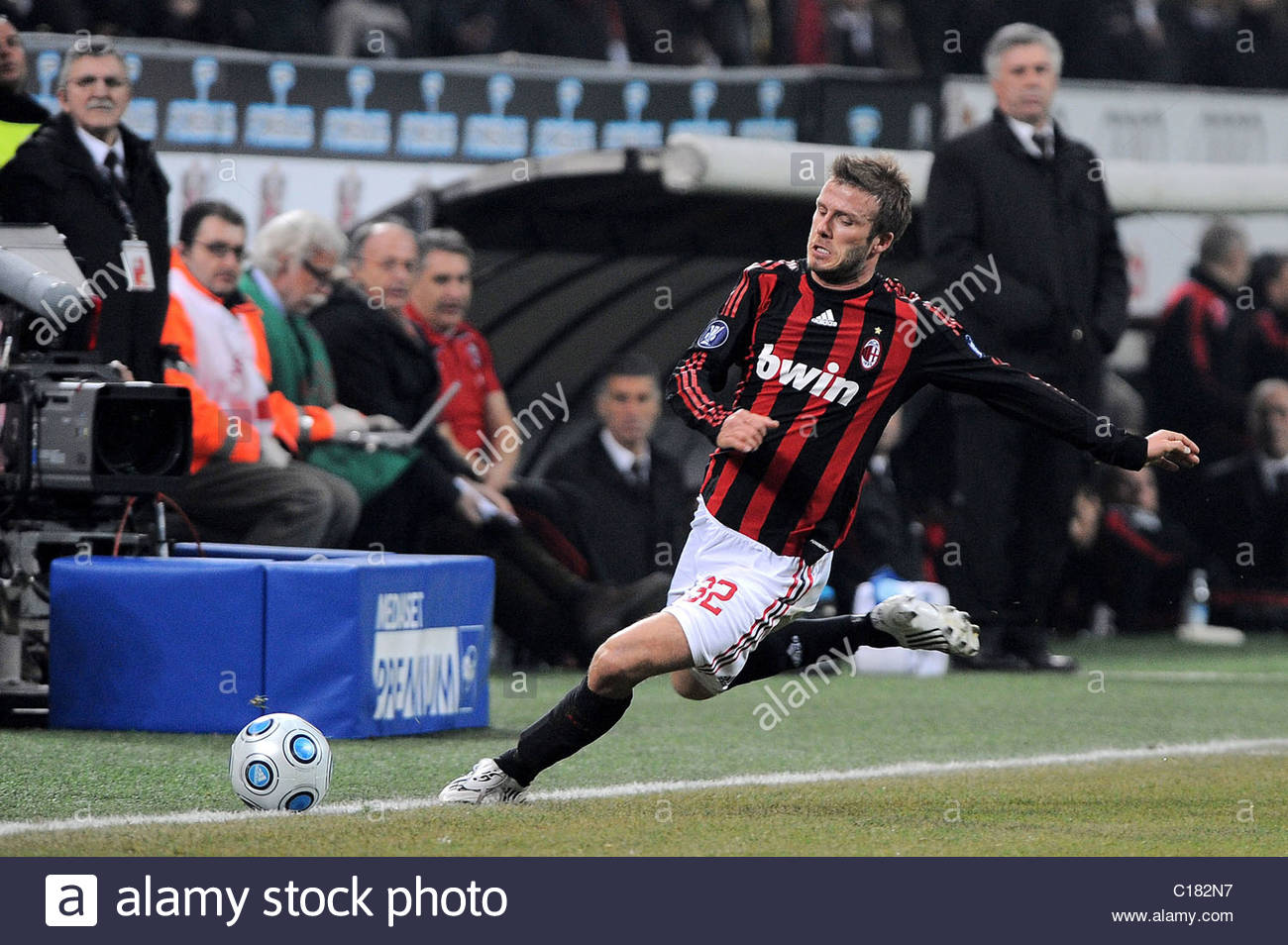 08 09 A C Milan 32 David Beckham Match Issued Home Shirt 3 Serie A Lega Calcio Match Worn Football Shirt Boots