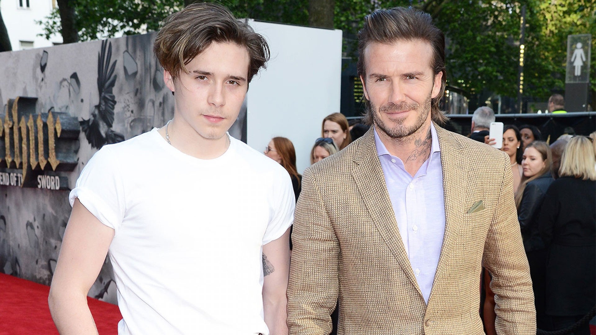 David Beckham Poses On Red Carpet With Look Alike Son Brooklyn At King Arthur Premiere Entertainment Tonight