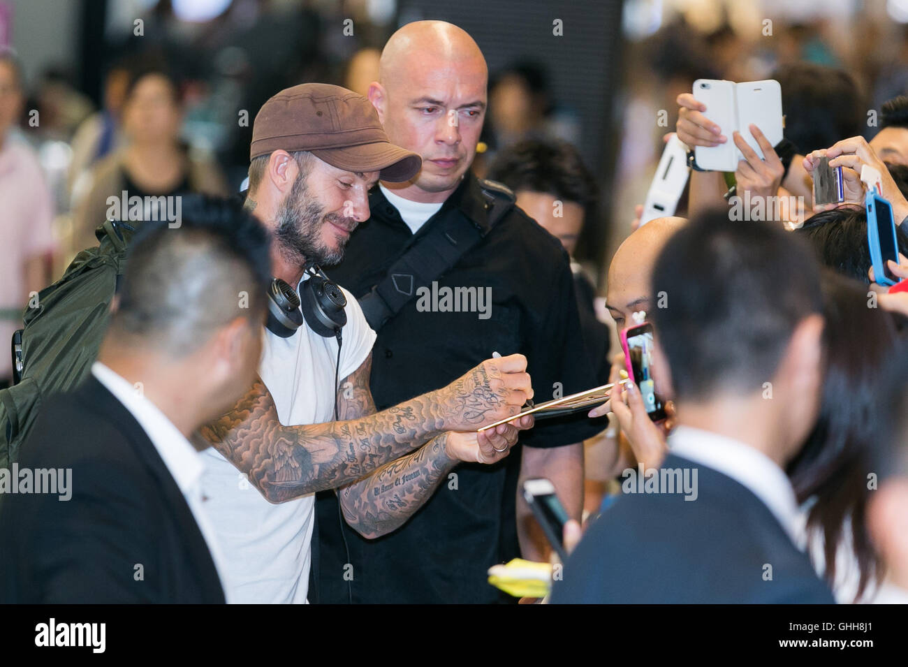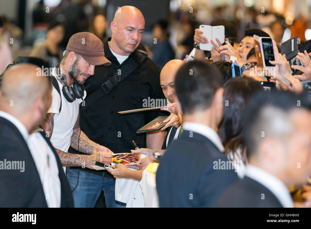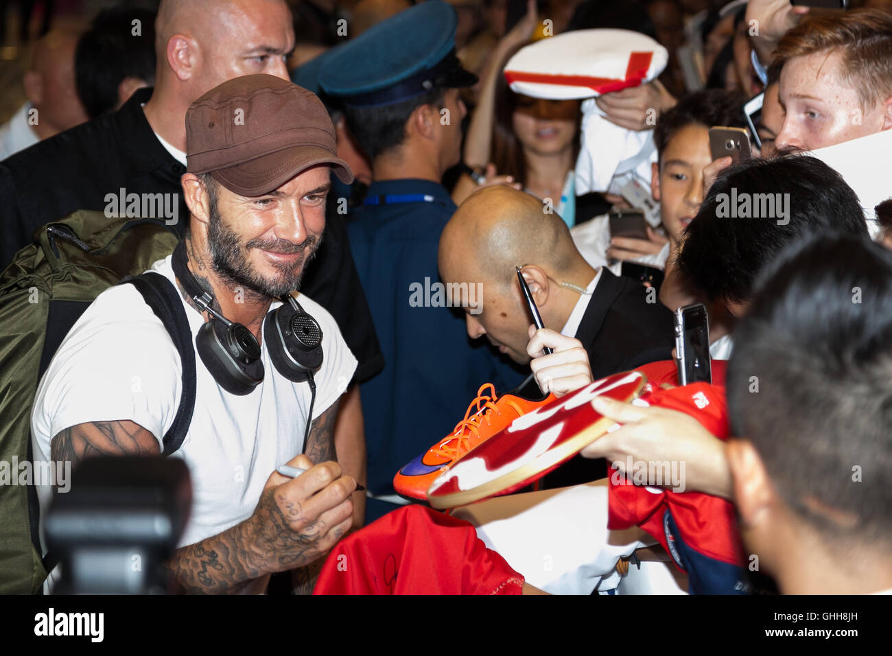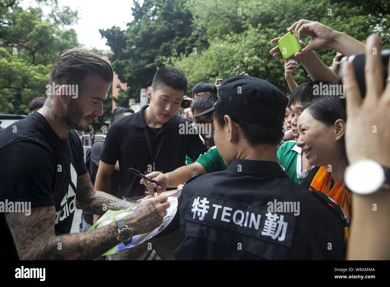 English Football Star David Beckham Signs Autographs For Fans During A Football Campaign By Adidas At Zhixin High School In Guangzhou City South Chin Stock Photo Alamy