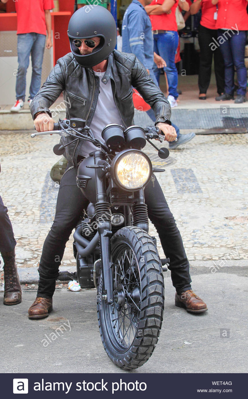 Rio De Janeiro Brazil David Beckham Goes For A Bike Ride On A Triumph Motorcycle In Rio This Afternoon The Former Soccer Player Geared Up For The Ride Wearing A White