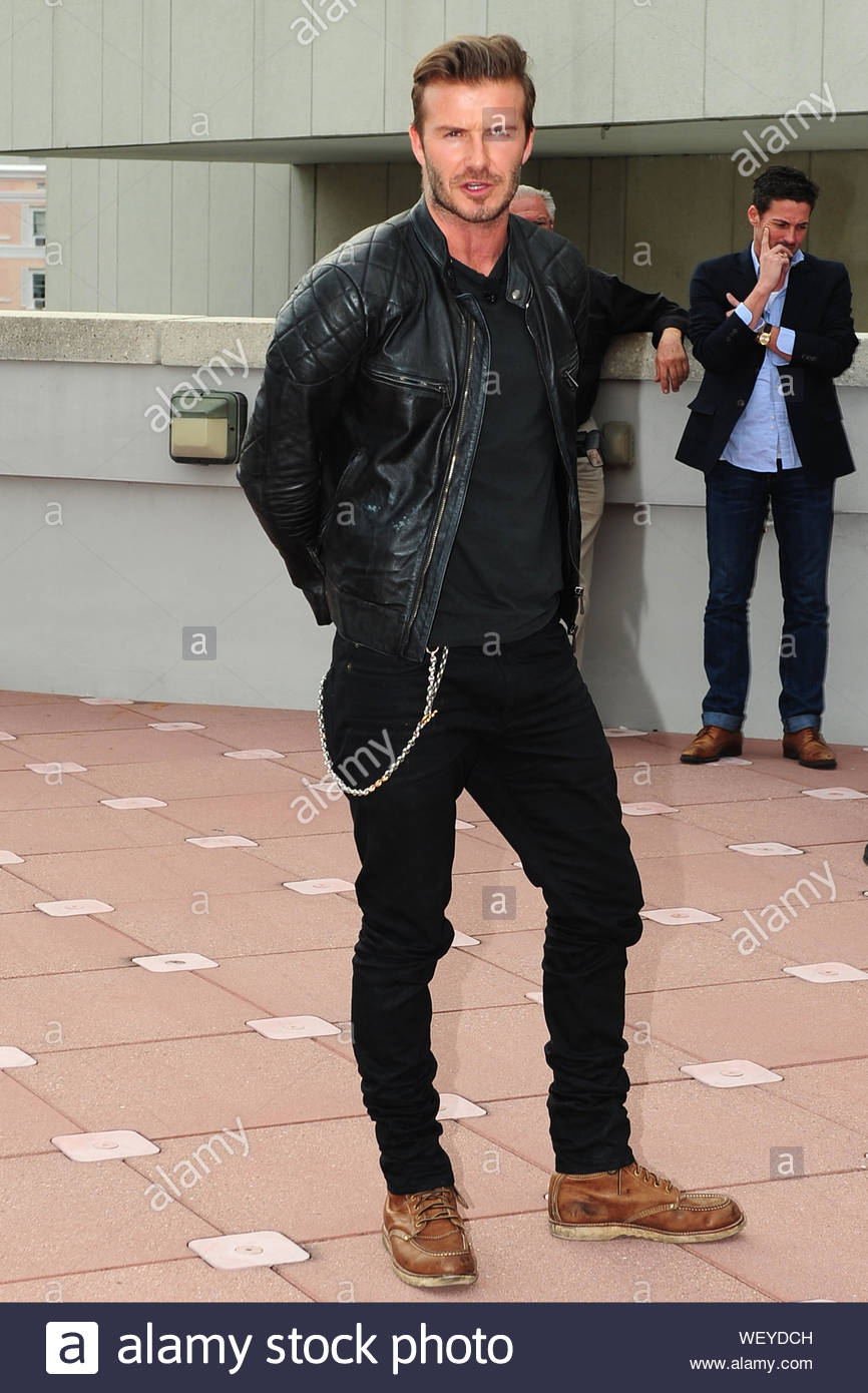Miami Fl Soccer Player David Beckham Holds A Press Conference In Miami Where He Discussed The Stadium Plans For His Mls Franchise David Wears A Hip Look With A Leather Jacket