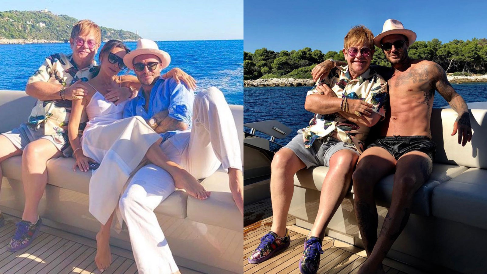 Shirtless David Beckham Kisses Wife Victoria After Leaping From Elton John S Luxury Yacht On Family Holiday In The South Of France