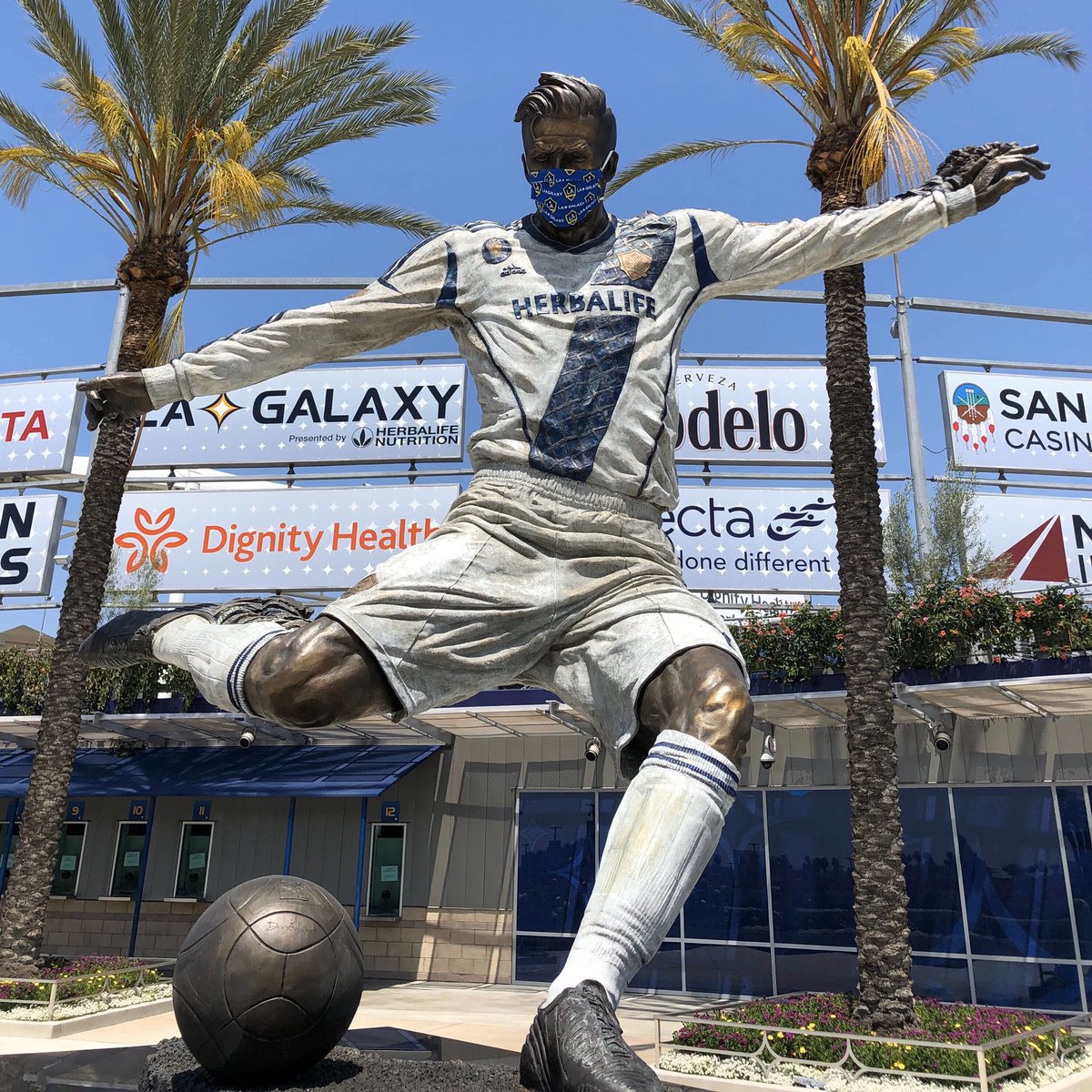Beckham is the first former mls player to have a statue created credit. David beckham is the latest soccer player to have his image immortalized after the galaxy recently unveiled a statue of their former player in front of dignity health sports park in carson. The la galaxy have gone for a cast in action statue of david beckham unveiled ahead of the clubs 2019 season opener against the chicago fire on saturday.
