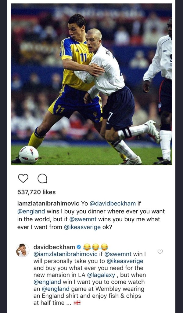 Bbc Sport On Twitter David Beckham Zlatan Ibrahimovic Have Come To A Deal On The Eng V Swe Match Https T Co Pn9q3ek2ju